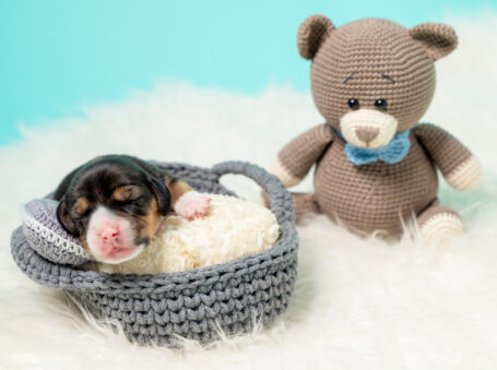 Z wiekiem część ubarwienia czarnego przebarwi się w brąz, więc całe główki i część tułowia będą brązowe (ciekawostka; szczeniaki rodzą się całe czarno-białe). Szczeniaki są pod stałą opieką weterynarza. Są odrobaczywione adekwatnie do wieku, zaszczepione, po przeglądzie hodowlanym w oddziale Związku Kynologicznego.